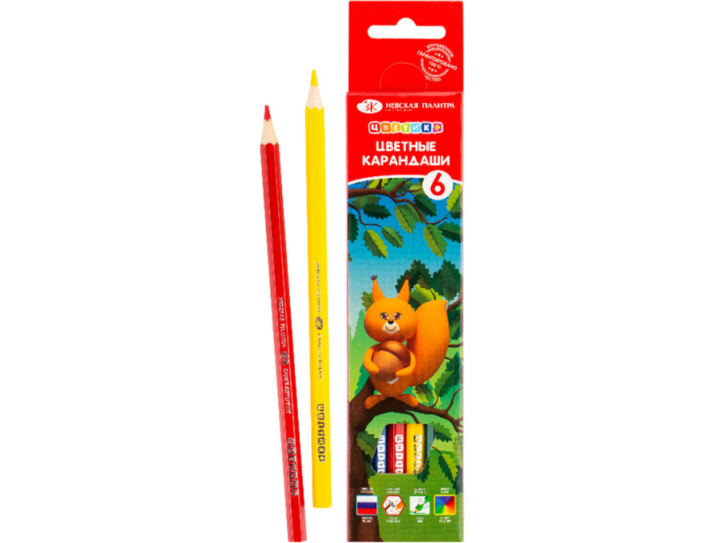 Карандаши цветные ЗХК "Цветик", 6 цветов, шестигранные, 2М-4М, картон