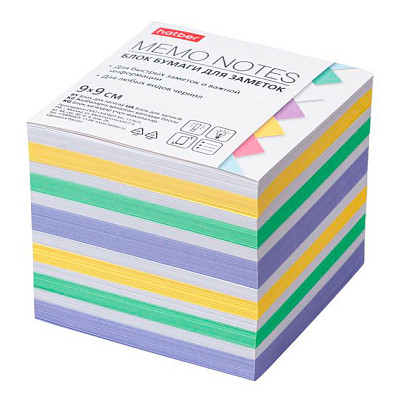 Блок бумаги для заметок "Стамм", 8x8x5см, 4 цвета, непроклеенный, в плёнке
