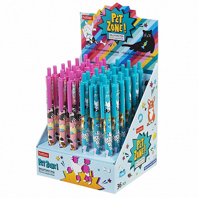 Ручка шариковая автоматическая "Hatber PetZone", 0,7мм, синяя, чернила на масляной основе, цветной корпус с ри