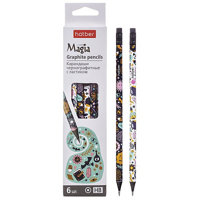 Чернографитный карандаш для черчения, рисования и письма. Круглый корпус. Хорошо и ровно точится. Прочный грифель диаметром 2 мм и твердостью HB. С ластиком. Заводская заточка. Упаковка: 6 штук в индивидуальной картонной коробке.