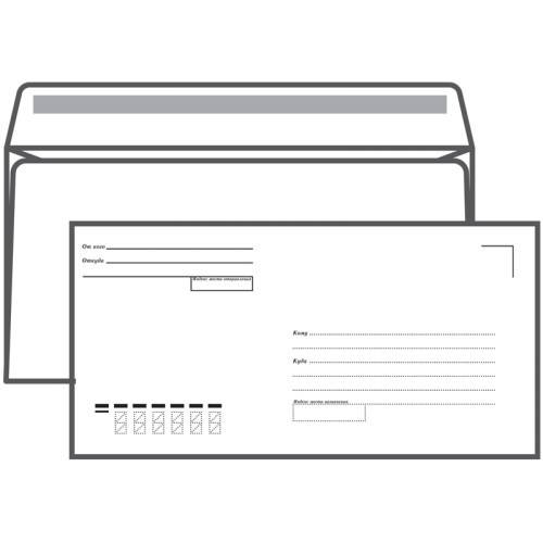 Конверт Е65 Kuvert (110х220 мм) белый, удаляемая лента, с подсказом "Куда-Кому"